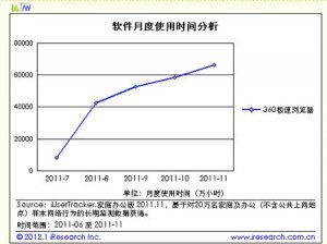 艾瑞数据显示,360浏览器用户增长势头强劲,至2011年三季度末,360浏览器的月度活跃用户数为2.35亿,市场渗透率达到57%。360安全浏览器继续保持稳定增长,360极速浏览器的市场渗透率也已超过8%。同时,360还推出了360手机浏览器、Pad浏览器等新品...