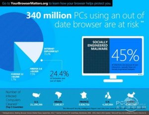 微软 最近公布的一则安全统计数据表明,目前全球约3.4亿台个人电脑目前的浏览器已经过时,容易遭到恶意软件的攻击。微软告诫用户使用新版本的浏览器。 浏览器使用情况 微软近日日上线YourBrowserMatters.org网站,用于帮助用户统计 浏览器安全 级...