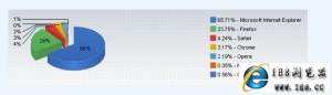 据国外媒体报道,互联网流量监测机构Net Applications周四发布的统计数据显示,今年9月份IE浏览器的市场份额为65.7%,比上月下滑1.3个百分点。而火狐浏览器和Google Chrome的市场份额同期却继续保持增长。 Net Applications数据显示,今年9月份IE...