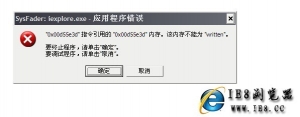 在使用IE8浏览器的时候出现下面症状,改如何修复? Sysfader iexplore.exe应用程序错误 电脑在加载程序时,程序内容读入内存时出错,所显示的一连串数字就是在内存中错误的位置,这无关紧要。 关键是这个程序有错,而其他程序没错,足以说明是这个...