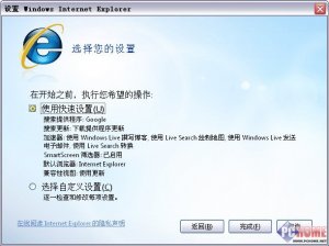 在目前版本的 IE8浏览器 中,安装完后第一次启动的时候,会出现使用向导,引导用户对IE8做一些自定义化的配置。在经过欢迎页和打开建议网站后会出现设置选择,微软打算更改的地方正是选择设置里的某个选项。 如果你选择了自定义设置,会在倒数第二步看到一个...