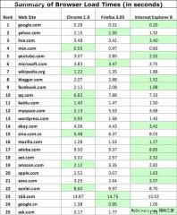 微软 在 IE 8正式版提供下载前几天曾发布了一份文档,对 浏览器 基准和性能进行了测试,并且表示,用户们真正关心的只有浏览器的页面加载速度,在这份文档中,微软从comSource评出的全球前五十名网站中选取了25个,测试了IE8、Google的Chrome 1.0和 Mozilla...