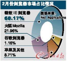 美国知名咨询机构JancoAssociates公司(以下简称Janco)周二发布的最新统计报告显示,自本月开始以来,微软IE浏览器在全球市场的份额为72.23%,Mozilla的火狐(Firefox)相应份额为17.18%,谷歌Chrome为2.78%。 Janco这份名为全球操作系统和浏览器市场份额的白...