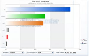 2010年9月份,IE全球市场份额首度跌破50%。目前,IE市场份额正在以每14个月10个百分点的速度下滑。 据国外媒体报道, Chrome浏览器 已在7个大洲中的2个攫取第二大浏览器称号。 互联网数据统计公司StatCounter 数据显示,10月份的第一周,Chrome亚...