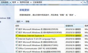 Internet Explorer 是以系统组件的方式存在于 Windows 中的,因此安装和卸载方式都与系统更新程序类似。卸载 IE 需要在程序和功能控制面板中单击左侧的查看已安装的更新。在列出的更新程序列表找到 IE9,单击卸载按钮即可。与此同时,IE 的语言包...