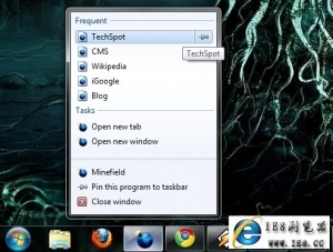 Firefox 3.7的开发计划中已经明确表示将对jumplists功能提供支持,并且最新版的Minefiled(俗称炸弹版)中已经提供了功能预览,包括可以建立新标签、打开新窗口、访问常用页面等,含图....