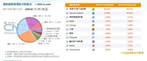 根据国外权威机构StatCounter及Net Applications等的数据,来分析一下2011年12月份全球流浏览器市场份额排行榜的最新情况。 首先是来自Net Applications的数据: 2011年12月份,微软 IE浏览器 市场份额继续下滑,不仅份额创下新低,而且按目前的态...