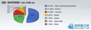 美国互联网流量监测机构Net Applications发布了2011年7月份最新浏览器市场占有率及排行统计数据,统计结果显示,2011年7月,微软IE浏览器全球市场份额持续走低,由6月的53.68%下降到52.81%,继续下降0.87个百分点。 ▲浏览器市场占有率图 ▲浏览器...