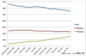 12月2日消息,国外数据分析机构Net Application 11月份的浏览器市场份额数据。微软IE浏览器依旧占一半以上份额. 市场占有率前三名为 IE 、 Firefox 、 Chrome 和 safari ,所占市场份额分别为52.64%、22.14%、18.18%和5.00%。 从今年的整体趋势来...