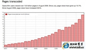 毋庸置疑,移动互联网浏览势头正在不断增长。来自Opera最近的数据显示2009年8月拥有接近3200万人使用Opera Mini浏览器,相对去年增长147%。在PV方面,Opera在8月份更是获得了139亿的访问量,相对7月份提升了15.7%,而相比去年同期则提升234%,这就...
