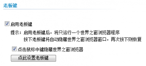 在世界之窗浏览器中,您可以使用老板键立刻隐藏和显示浏览器界面。 您可以通过以下方式使用老板键功能: 1.使用快捷键(需要在 更多选项隐私保护 中开启) 2.使用鼠标中键(需要在 更多选项隐私保护 中开启)...