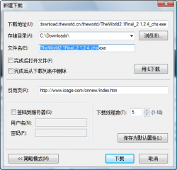 世界之窗浏览器内建了一个小巧的下载工具,方便您在浏览网页的同时随手就能下载文件。 左键点击页面上要下载的文件或者在要下载的文件上点击右键,选择使用世界之窗下载,均可调用内建下载下载文件。 在新建下载对话框上,可对内建下载进行设置。(某些地址用...