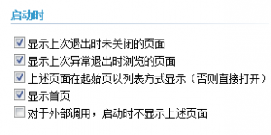 进入 更多选项常规,可对世界之窗的启动项目进行设置。 推荐勾选显示上次退出时未关闭的列表、显示上次异常退出时浏览的页面和上述页面在起始页以列表方式显示(否则直接打开)。...