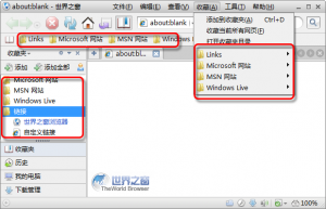 世界之窗的收藏夹有三种查看方式,分别为:收藏栏、收藏夹(侧边栏上)、收藏夹菜单。 在收藏的链接上点击右键,可将链接设置为我的最爱,我的最爱链接将以不同的颜色显示出来,让您一眼就能找到最爱的链接。 进入更多选项收藏夹设置 ,可对世界之窗的收藏夹...